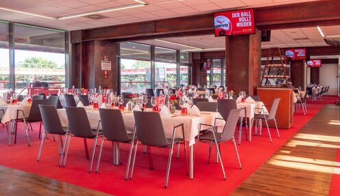(Zugang zur Eisern Lounge mit stilvollem Ambiente und direktem Blick auf das Spielfeld) - Kulinarisches Angebot